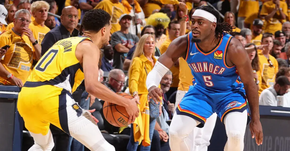 战至总决赛,步行者面对西部第一的雷霆丝毫不惧,即便有常规赛MVP亚历山大存在,可步行者全员皆兵,多点开花的战术打法,让雷霆十分头疼。战至总决赛第六场,步行者不再像之前一样慢热,球队在第二节就打出一波进攻小高潮,半场拿到22分领先。